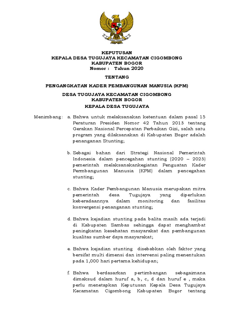 Contoh sk kader pembangunan manusia (kpm), stunting desa terbaru.